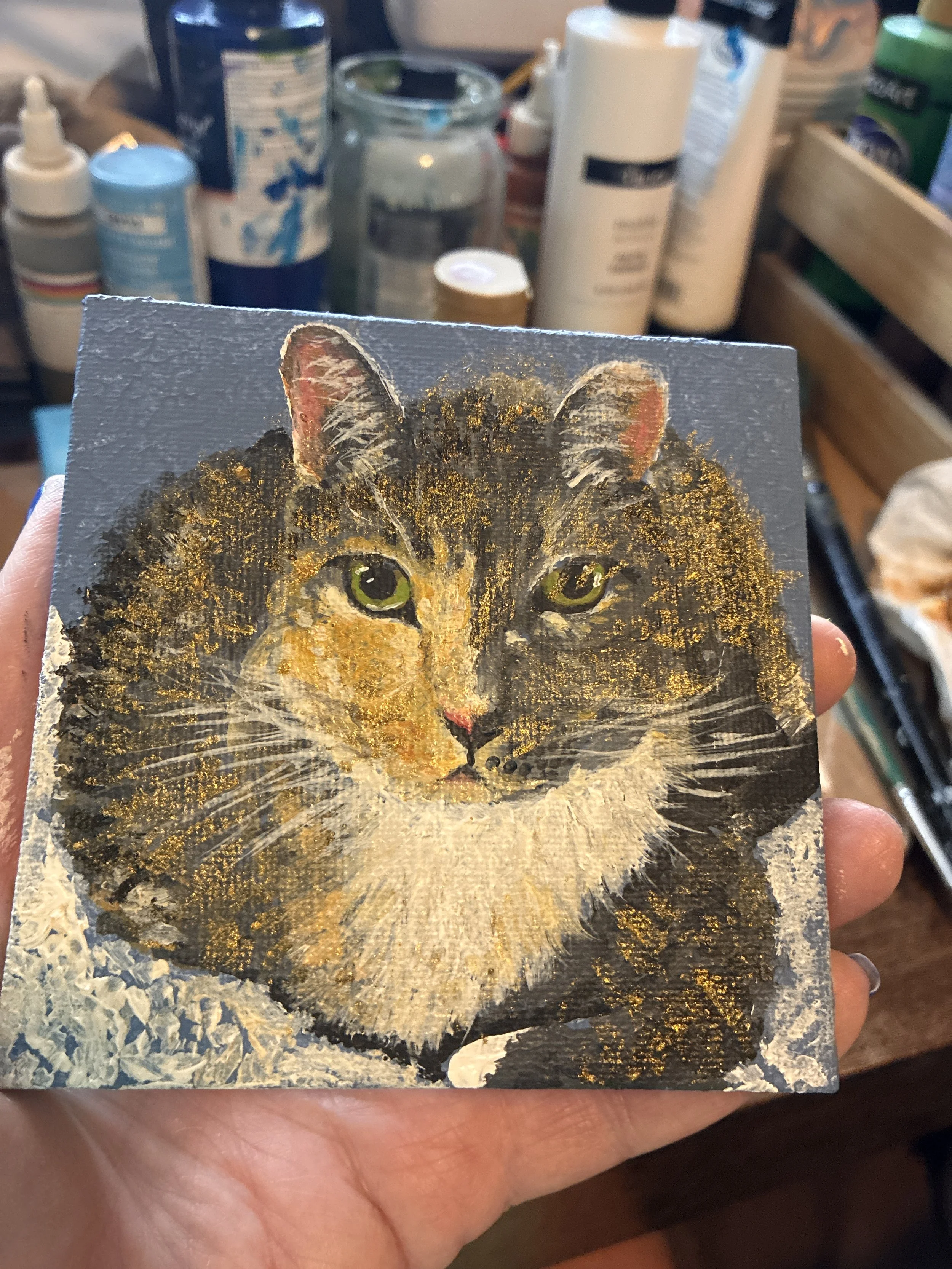At Art Studio A, we specialize in creating custom pet portraits that capture the essence of love and memories. Each painting is crafted to convey the unique bond between pets and their owners, immortalizing a cherished moment in exquisite detail. Nanci pours her heart into every stroke, ensuring that the final piece is not just a portrait, but a heartfelt tribute to the special connection shared between a pet and their family. Let us help you celebrate your beloved companion with a timeless work of art that will bring joy and warmth to your home for years to come.